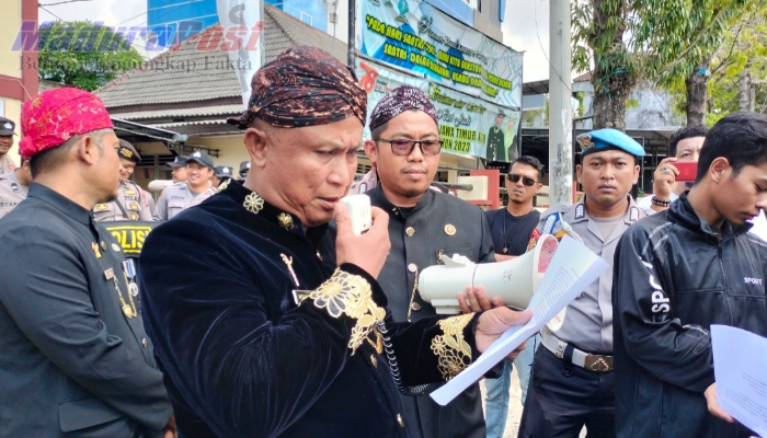 SUMENEP, MaduraPost – Dalam aksi demontrasi yang digelar mahasiswa di Kantor Dinas Kebudayaan Pemuda Olahraga dan Pariwisata (Disbudporapar) Kabupaten Sumenep, Madura, Jawa Timur, saat menyoal program Santri Interprenuer menghasilkan sejumlah asumsi dan temuan. Selasa, 31 Oktober 2023.