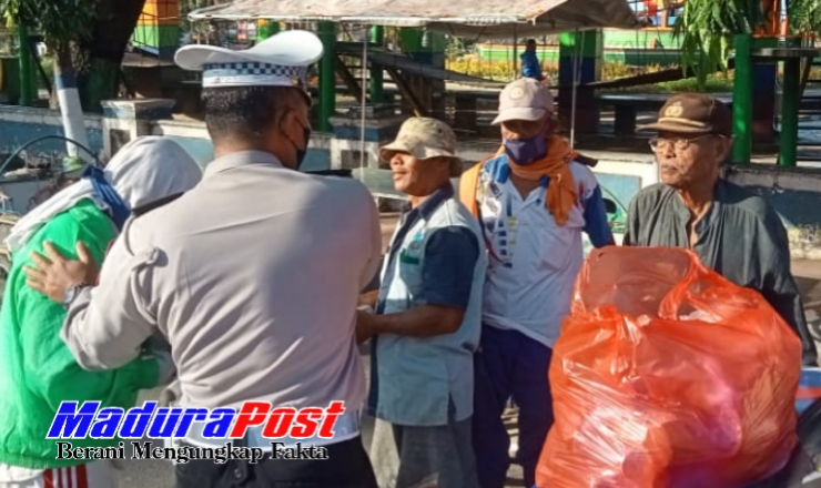 SAMPANG, MaduraPost – Bentuk kepedulian jajaran Satlantas Polres Sampang memberikan nasi bungkus dan air mineral 80 paket kepada Abang becak beserta kaum dhuafa dan tukang parkir bertempat, di simpang empat masjid Duwe Pote, Jalan Jamaluddin dan Jalan Kramat.