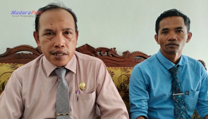 WAWANCARA. Potret kuasa hukum inisial AR, Syafrawi (kanan) dan Fathorrahman (kiri), saat memberikan keterangan resminya kepada awak media, soal kasus KDRT yang menimpa kliennya di PN Sumenep. (M.Hendra.E/MaduraPost)