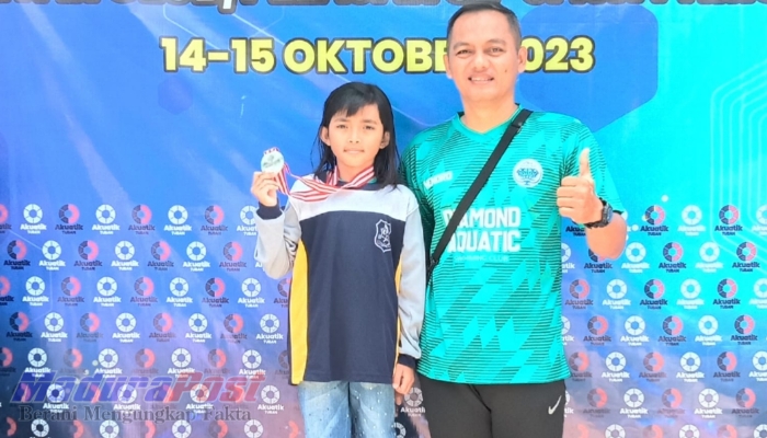 SUMENEP, MaduraPost – Perdana, salah satu siswi asal SDN Kalianget Timur I, Kecamatan Kalianget, Kabupaten Sumenep, Madura, Jawa Timur, meraih 2 medali perak dalam ajang Pahlawan Cup 3 Kejuaraan Renang Antar Club/Pelajar se-Jawa Timur. Minggu, 15 Oktober 2023.
