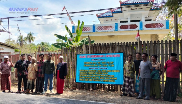 Mereka datang tidak hanya untuk menegaskan hak kepemilikan, tetapi juga untuk memasang plakat putusan Pengadilan Negeri Sumenep, Madura, Jawa Timur, yang mengukuhkan bahwa tanah tersebut sah milik H. Fathor Rasyid.