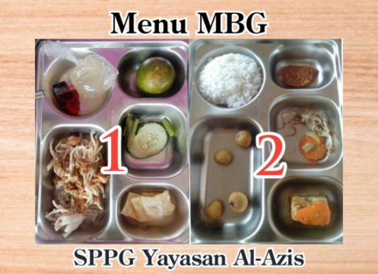 Sejak awal SPPG Yayasan Al-Azis merealisasikan program MBG, menu yang disajikan sangat tidak layak. hampir setiap hari Menu yang disajikan berupa nasi putih, Tempe kering, Telor iris dikasih saos, sedikit sayur dan buah klengkeng tiga biji.