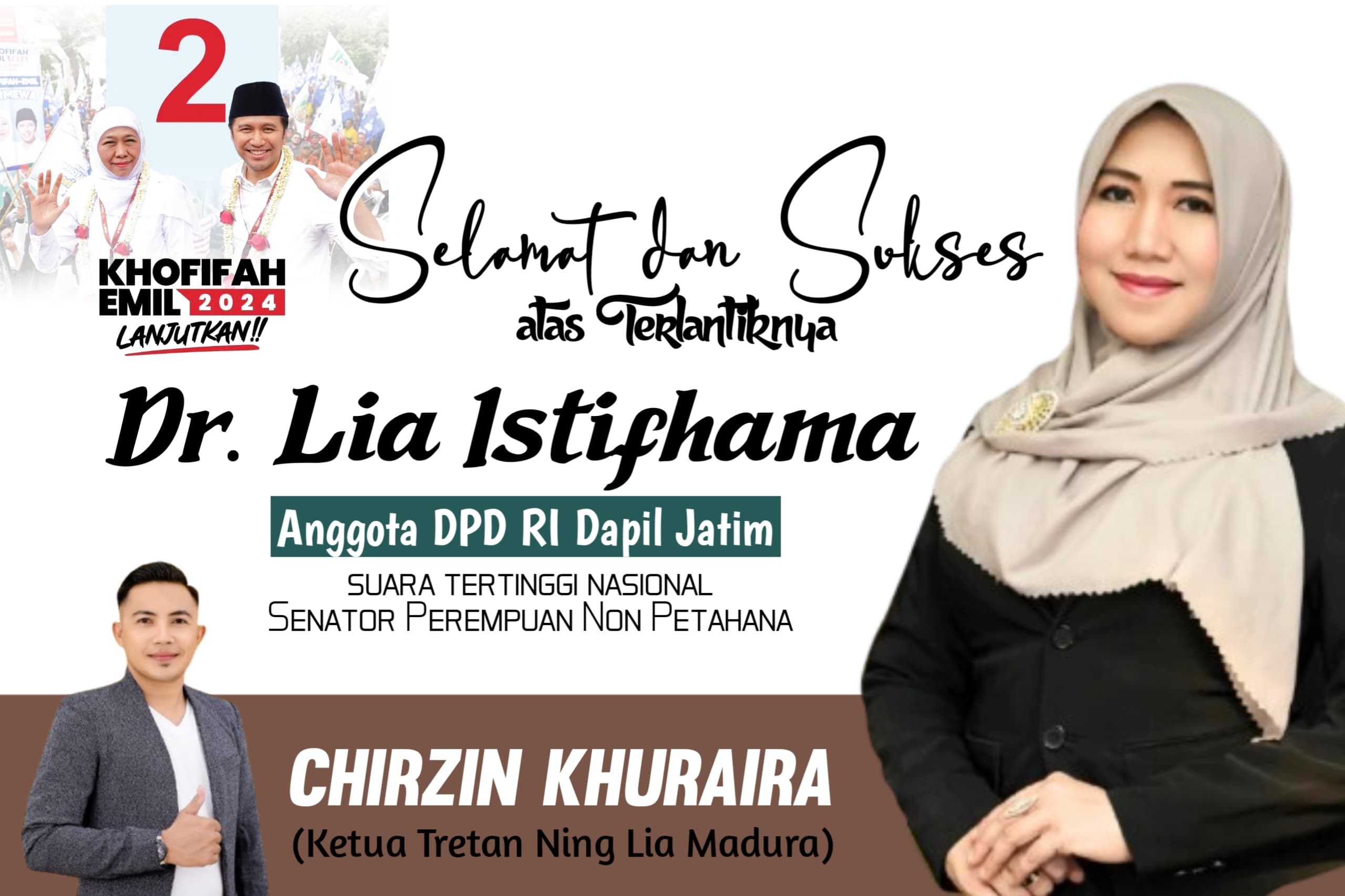 “Kami dari Taretan Ning Lia Madura merasa sangat bangga dengan terpilihnya Ning Lia sebagai senator. Beliau telah lama berjuang demi kesejahteraan masyarakat Jawa Timur, termasuk Madura, khususnya dalam bidang pendidikan, sosial, dan ekonomi. Kami yakin, dengan keberadaannya di DPD RI, aspirasi masyarakat Madura akan semakin terwakili di kancah nasional,” kata Chirzin Khuraira, Ketua Taretan Ning Lia Madura dalam keterangannya, Sabtu (5/10)