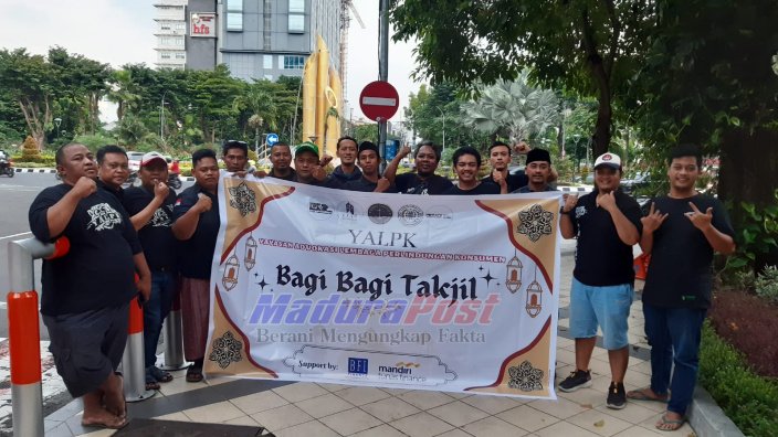 SURABAYA, MaduraPost – Yayasan Advokasi Lembaga Perlindungan Konsumen Grup (YALPK) Surabaya membagikan 1.000 takjil kepada masyarakat yang melintas di area Tugu Bambu Runcing, Jalan Panglima Sudirman, Surabaya, Sabtu, (15/04/2023).