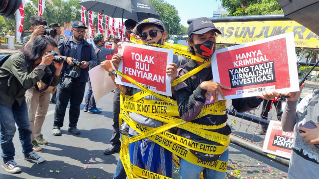 “Revisi Undang-undang Penyiaran ini mengandung sejumlah ketentuan yang dapat digunakan untuk mengontrol dan menghambat kerja jurnalistik. Beberapa pasal bahkan mengandung ancaman pidana bagi jurnalis dan media yang memberitakan hal-hal yang dianggap bertentangan dengan kepentingan pihak tertentu. Ini jelas bertentangan dengan semangat reformasi dan demokrasi yang telah kita perjuangkan bersama,” ujar Suryanto, Ketua Pewarta Foto Indonesia (PFI) Surabaya.