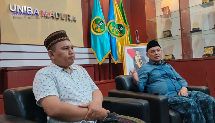 WAWANCARA. Konferensi pers di UNIBA Madura bersama Achmad Zuhri (kanan), Kepala LPPM dan Budi Suswanto (kiri), Wakil Rektor I UNIBA Madura, membahas kegiatan Ramadan yang melibatkan mahasiswa dan dosen. (M.Hendra.E/MaduraPost)