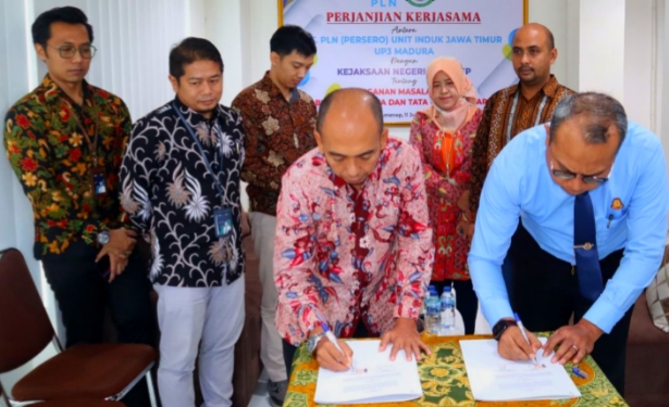 Manager UP3 Madura Fahmi Fahresi dan Kepala Kejaksaan Negeri Sumenep Sigit Waseso, menandatangani MoU tersebut dengan penuh semangat.