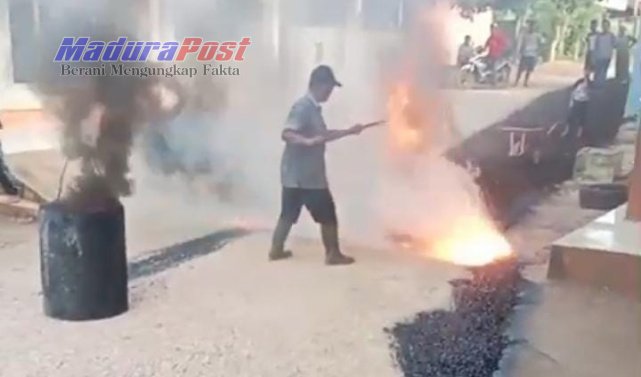 SAMPANG, MaduraPost – Warga Desa Sokobanah daya melakukan pengaspalan jalan poros Kabupaten yang menghubungkan Desa Sokobanah Daya dan Desa Sokobanah Tengah, Kecamatan Sokobanah.